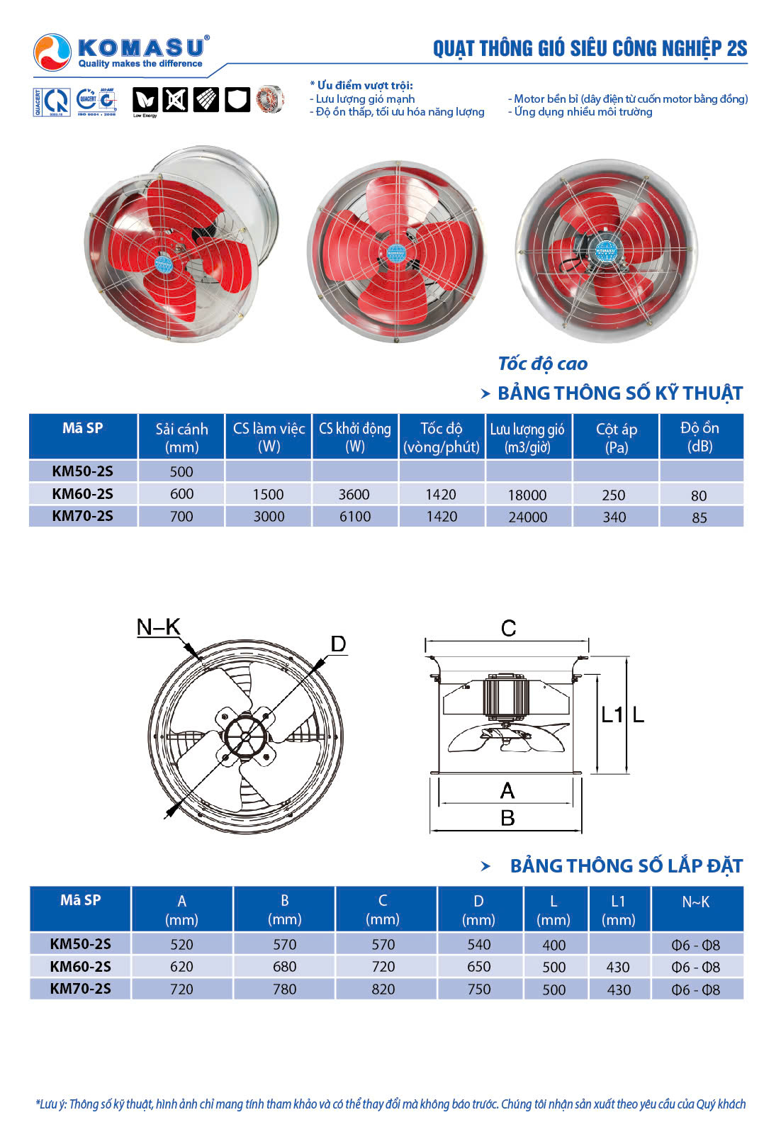 Quạt thông gió siêu công nghiệp tốc độ cao KM50-2S, KM60-2S, KM70-2S